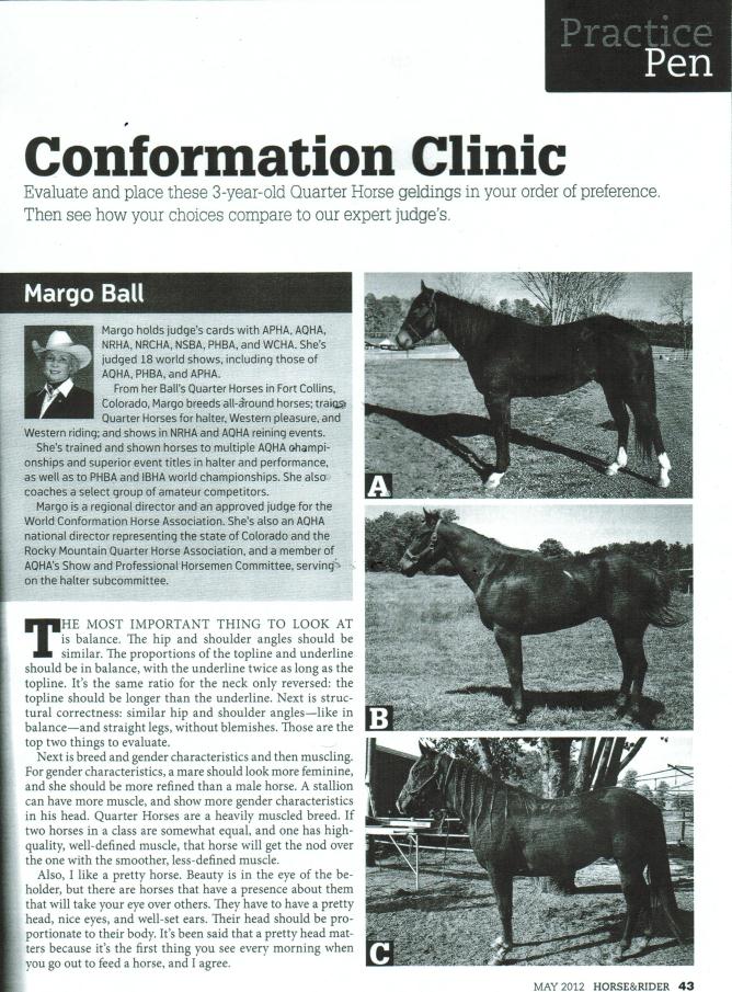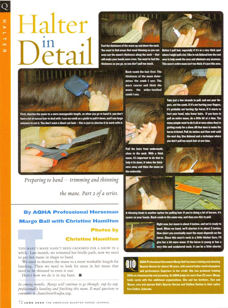 Margo has been in the winners circle since she was 9 years old. She has a college degree, teaching experience in public school and community college, and many years instructing horsemanship. Margo has won 8 World Championship Titles and has shown and trained many horses to Superior Event Titles in Halter, Western Pleasure, Western Riding and Reining as well as several AQHA Championships. She has also taken numerous horses to Top Ten placings at AQHA World Shows and the Quarter Horse Congress including a Reserve Champion title. Margo is an AQHA National Director for the State of Colorado. A long time member of the AQHA Professional Horseman's Association, she also serves on the Professional Horseman's committee and is a former member of the Professional Horseman's Council. Margo's most recent appointment was to the World Conformation Horse Association Board of Directors representing Region II as a professional Margo is one of the first women to have judged the five main World Championship shows. She has judged a total of 18 World Championship Shows, as well as the Arabian Nationals and The Canadian Nationals. She holds seven judging cards and has judged over 750 shows. As an author, Margo has been published in numerous books, over 20 magazines, and has produced two training videos/DVDs on showmanship and grooming (as can be reviewed on the "Videos" page).